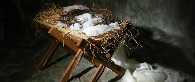The story of Christmas metaphor represented by a manger and crown of thorns. December 24, 2012 / Jaimie