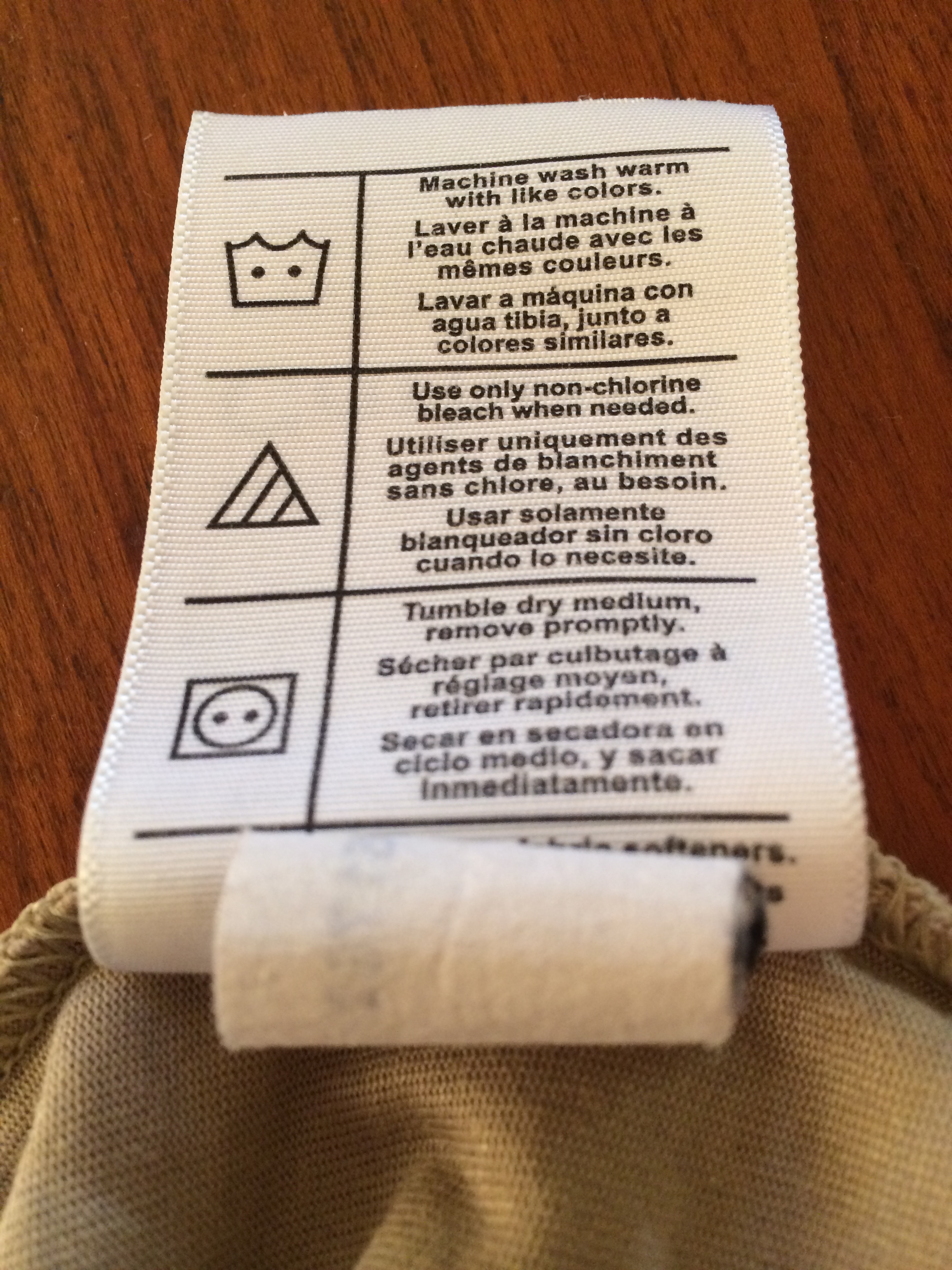 I must also confess that I’ve never taken the time to figure those dumb laundry labels out. When I do take the time to read the label, I’m greeted with Pictionary instead of language. I know I could easily look up their meanings, but ‘ain’t nobody got time for that’. So I guess and just wing it. It’s usually just fine, but not always…