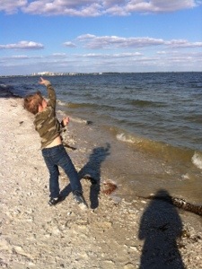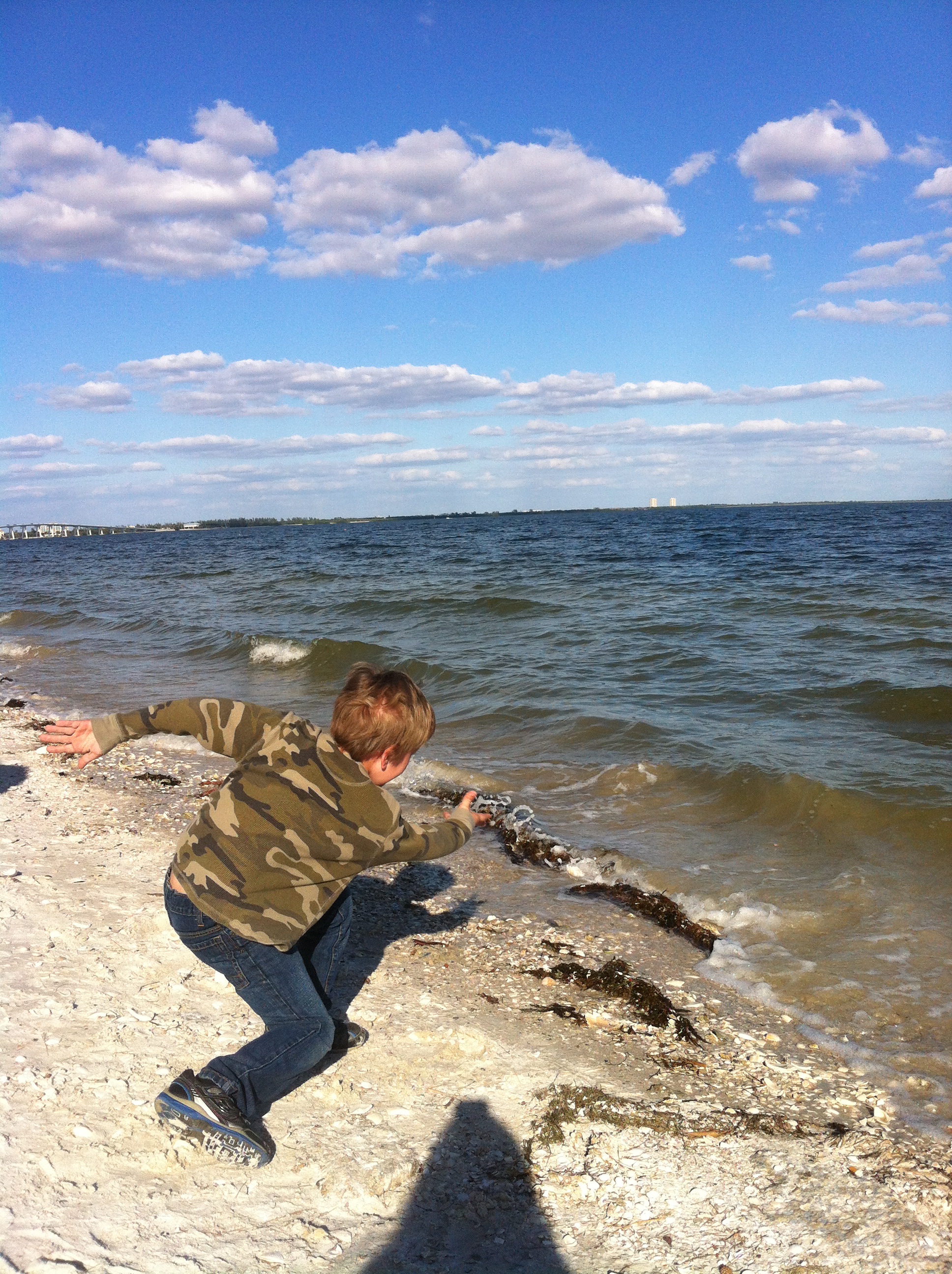 Flyboy finds a shell and sends it soaring helpless into the surf. He knows he can cause it to skip and skim instead of sink. When it disappears deep, he finds another and begins again, each time adjusting his angle, the spin of his wrist, the speed and thrust.